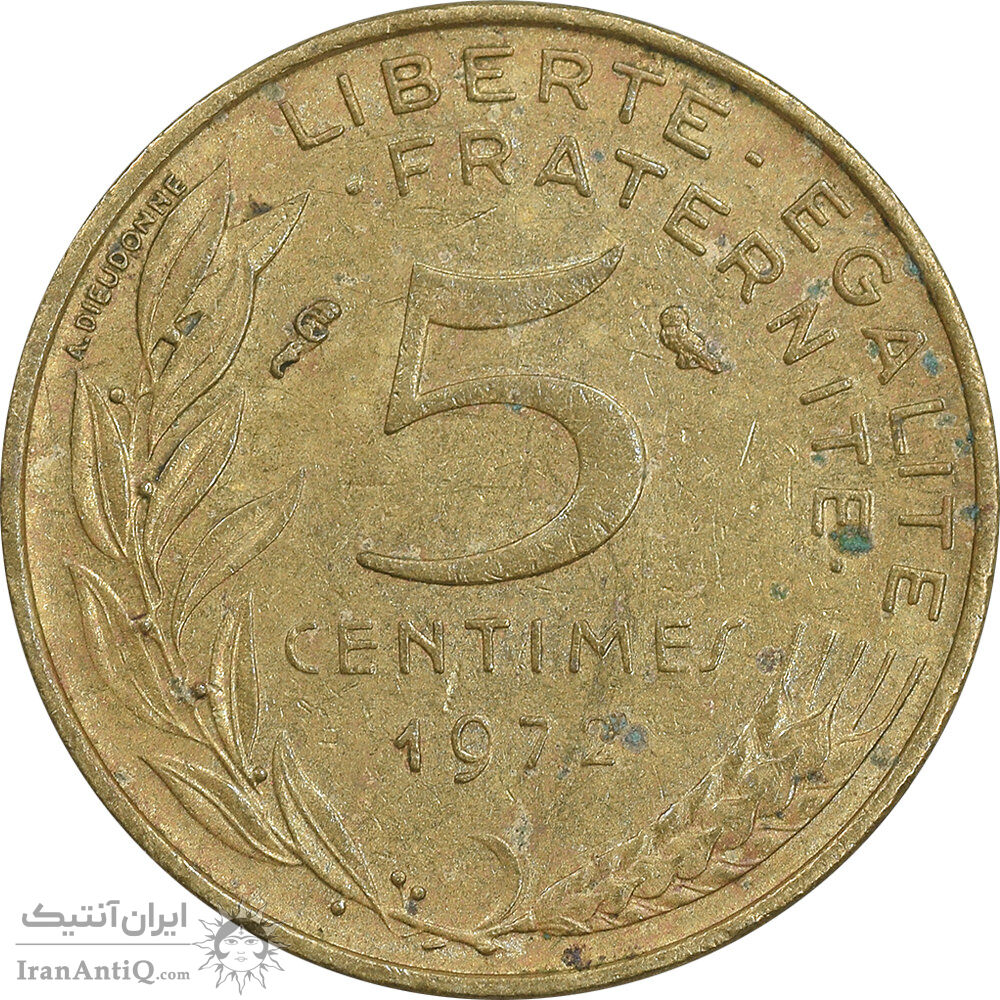 سکه 5 سانتیم 1972 جمهوری کنونی - ماریان - AU50 - فرانسه