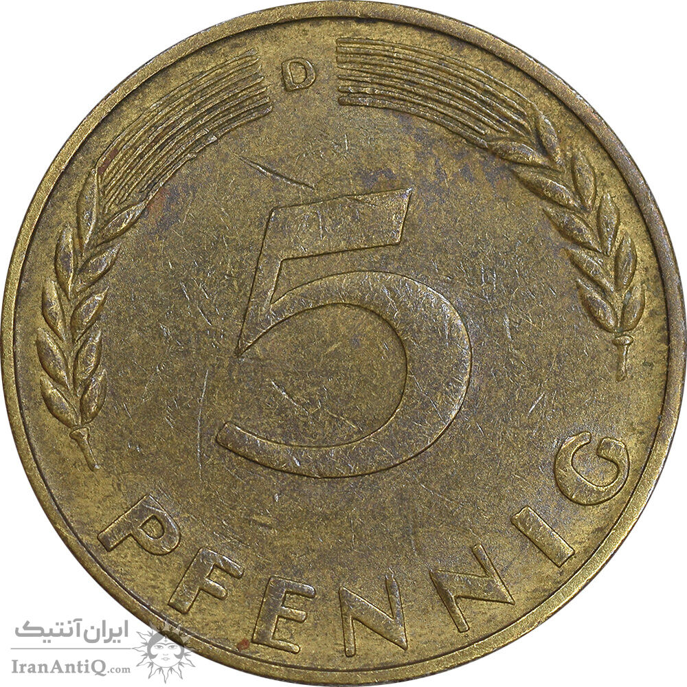 سکه 5 فینیگ 1950D جمهوری فدرال - AU50 - آلمان