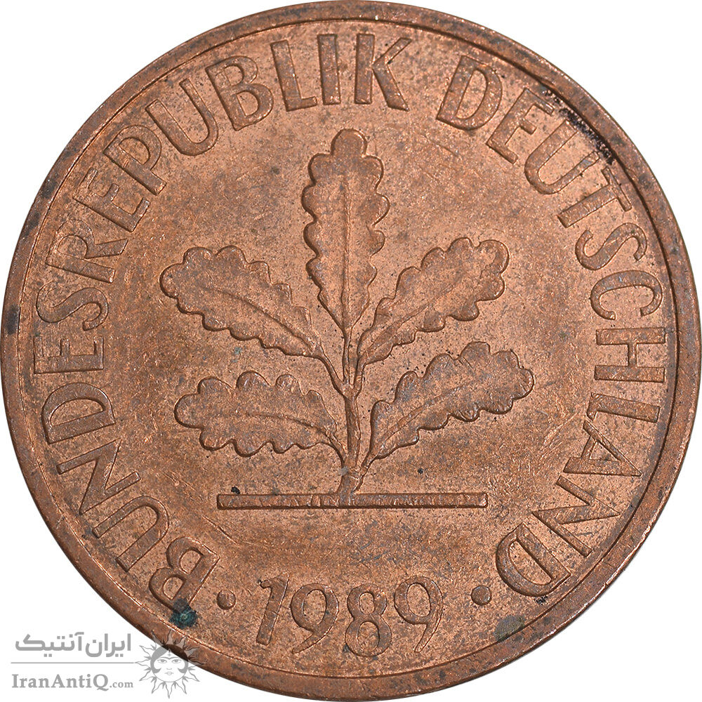 سکه 2 فینیگ 1989J جمهوری فدرال - AU55 - آلمان