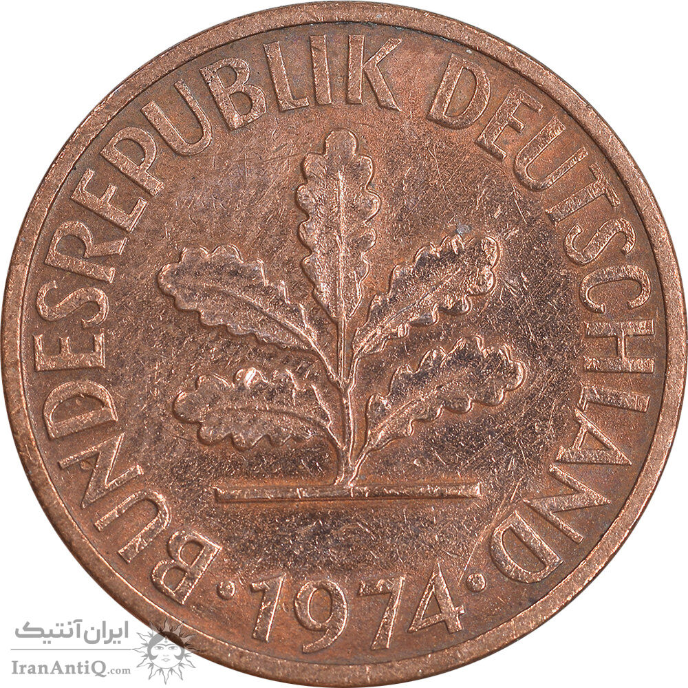 سکه 2 فینیگ 1974F جمهوری فدرال - EF45 - آلمان