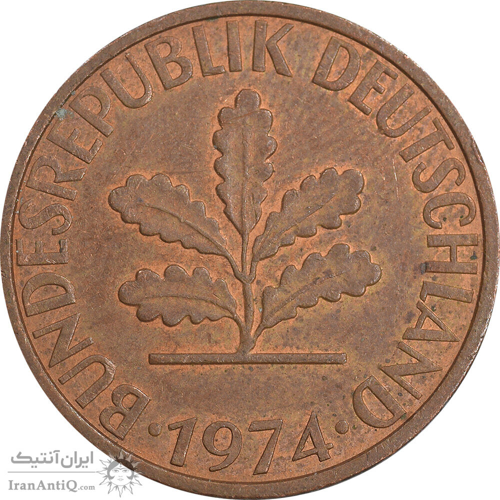 سکه 2 فینیگ 1974J جمهوری فدرال - AU50 - آلمان
