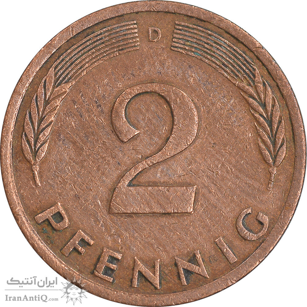 سکه 2 فینیگ 1972D جمهوری فدرال - EF45 - آلمان
