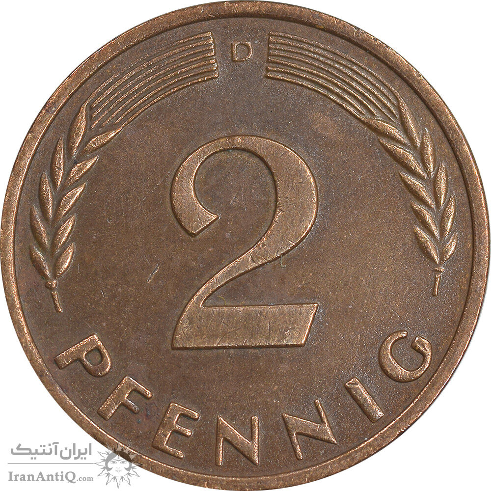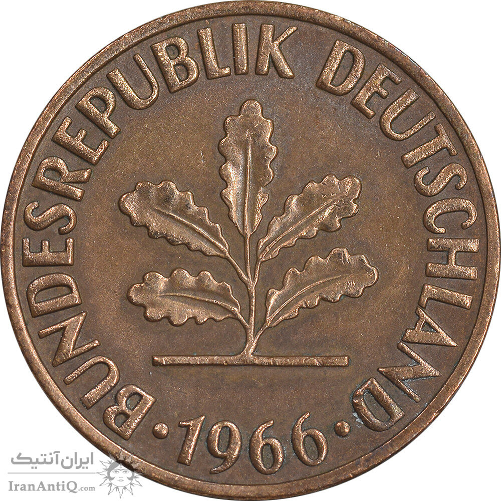 سکه 2 فینیگ 1966D جمهوری فدرال - EF45 - آلمان
