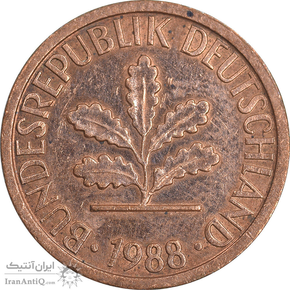 سکه 1 فینیگ 1988J جمهوری فدرال - EF45 - آلمان
