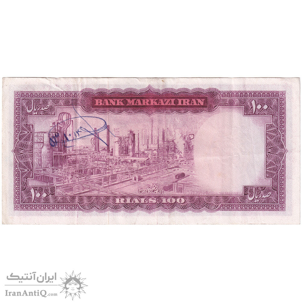 اسکناس 100 ریال (آموزگار - سمیعی) نوشته سیاه - تک - EF45 - محمد رضا شاه