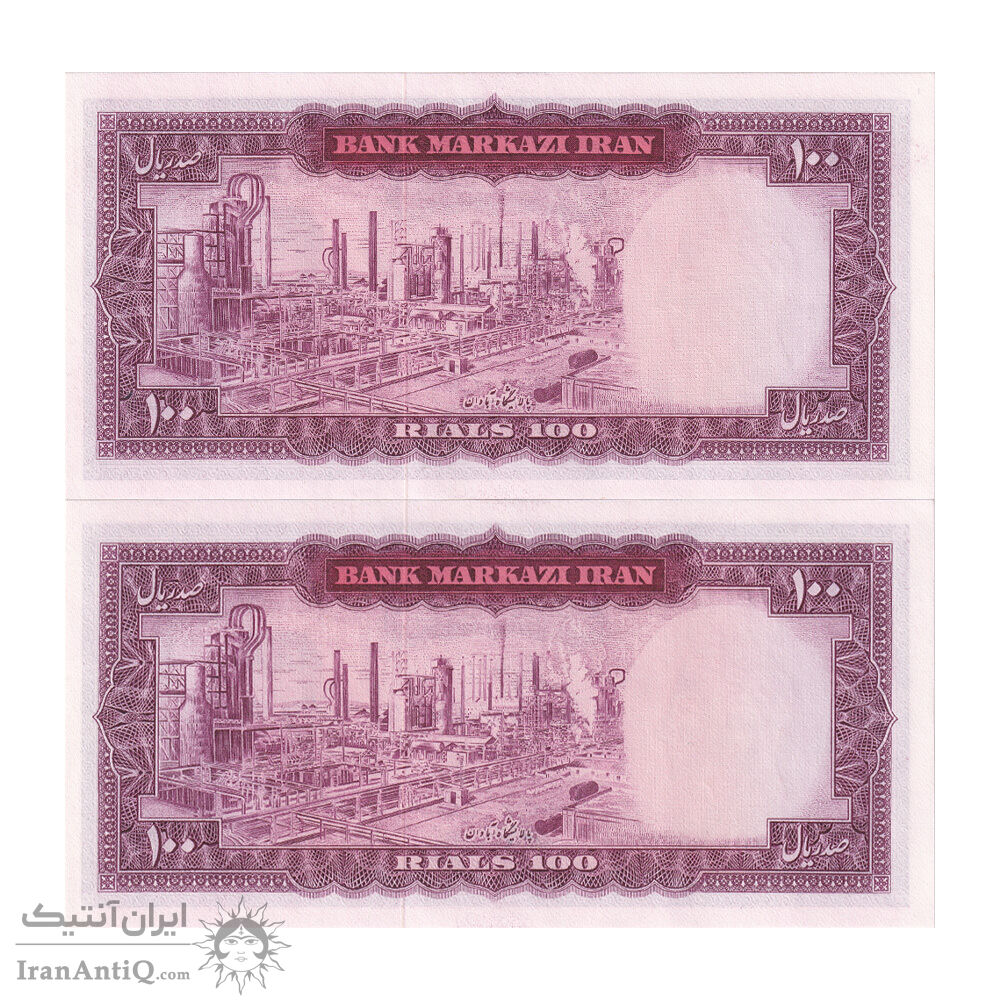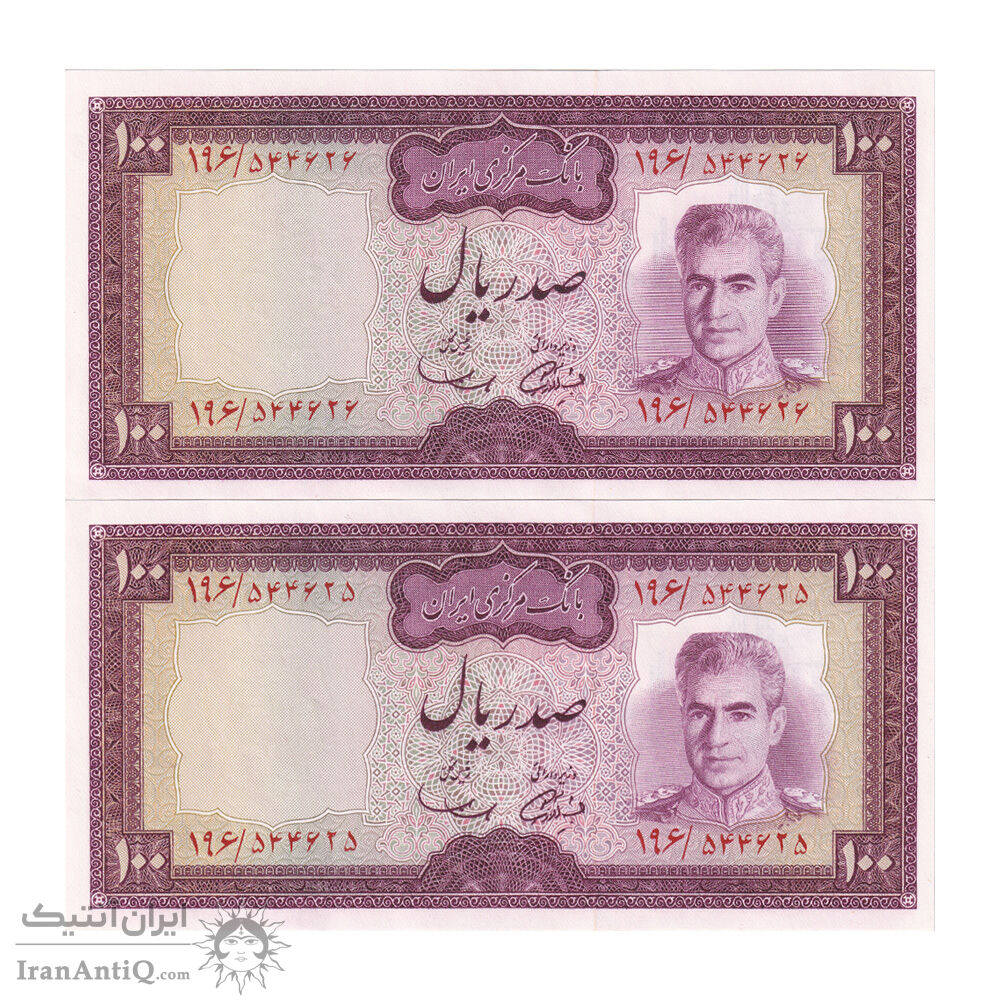 اسکناس 100 ریال (آموزگار - سمیعی) نوشته سیاه - جفت - UNC63 - محمد رضا شاه