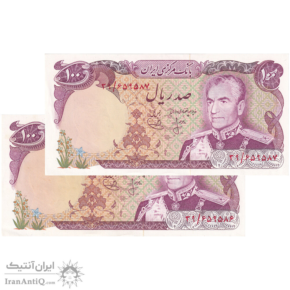 اسکناس 100 ریال (انصاری - یگانه) - جفت - UNC61 - محمد رضا شاه