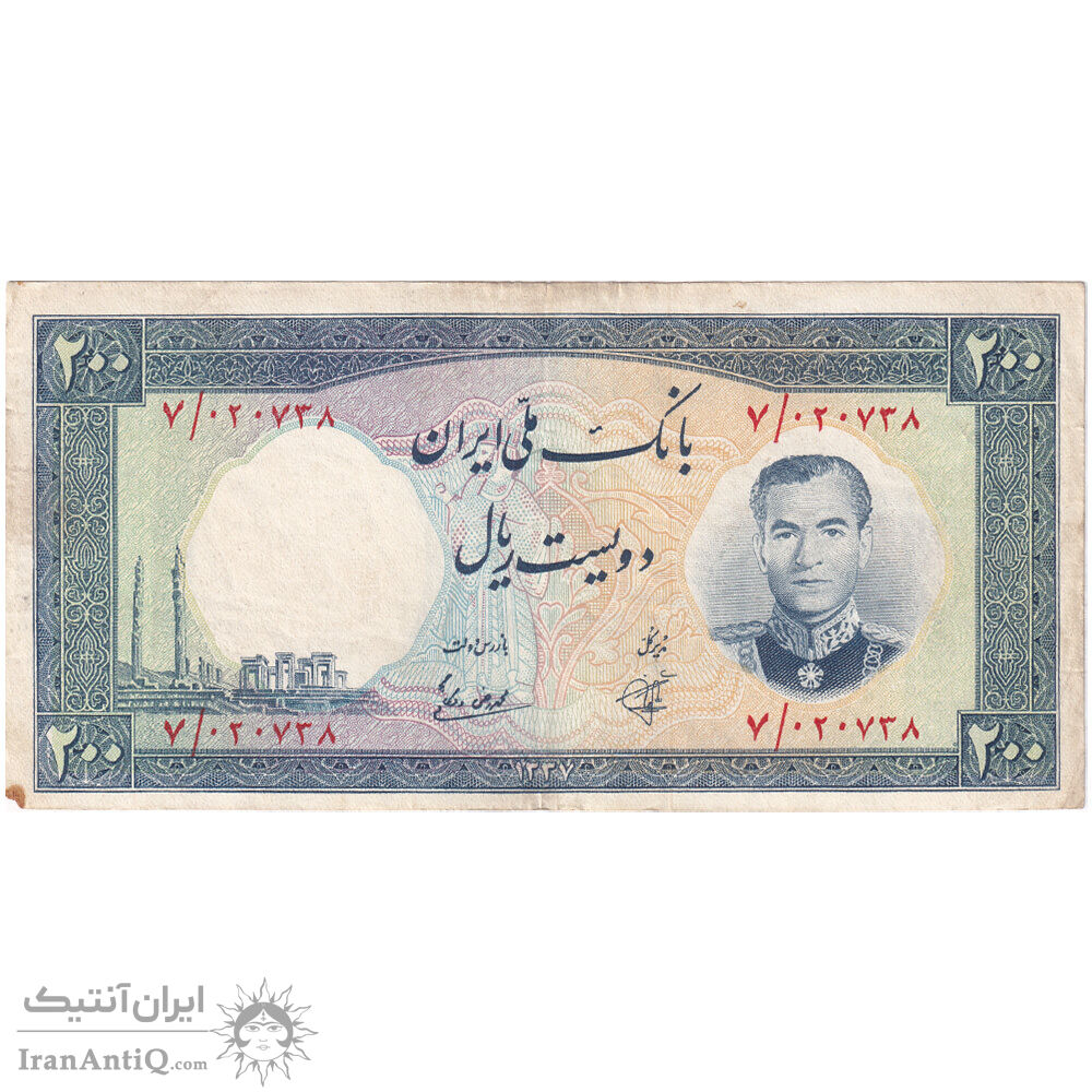 اسکناس 200 ریال 1337 - تک - VF35 - محمد رضا شاه