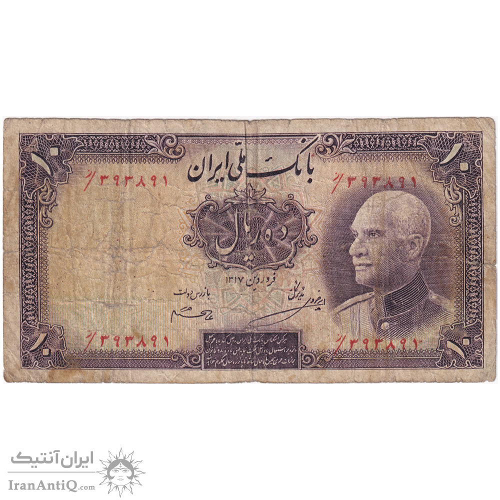 اسکناس 10 ریال پشت فارسی - بدون مهر - تک - F12 - رضا شاه