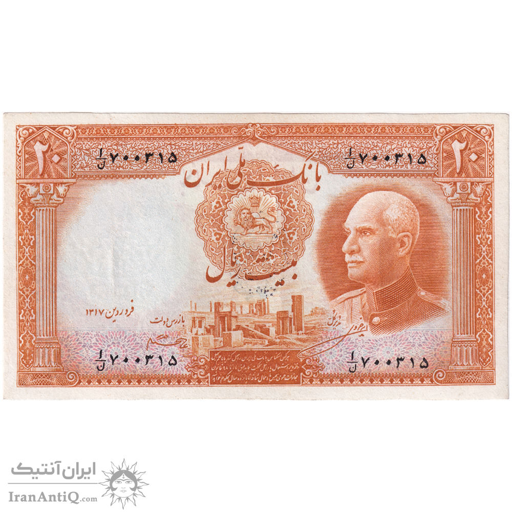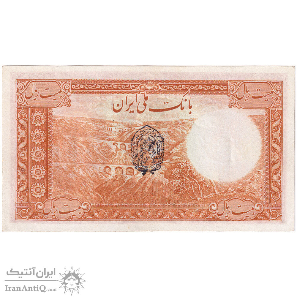 اسکناس 20 ریال پشت فارسی - مهر نامشخص - تک - EF45 - رضا شاه