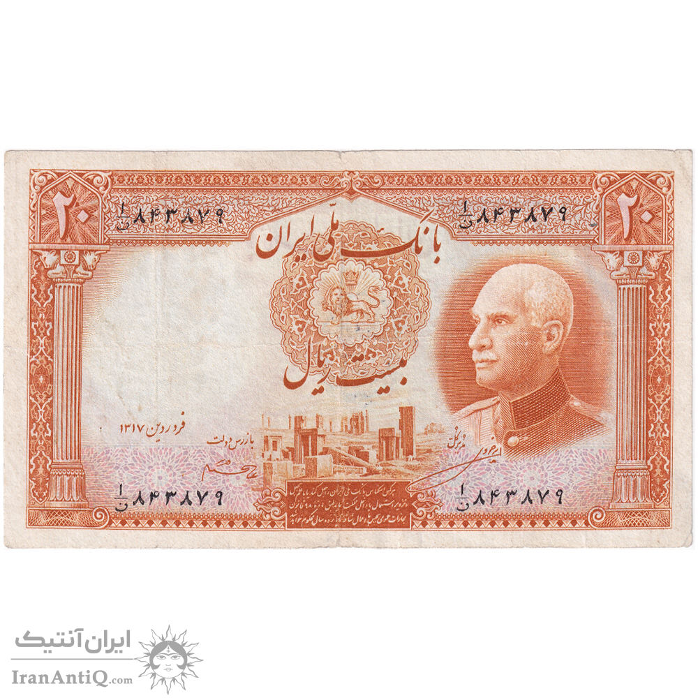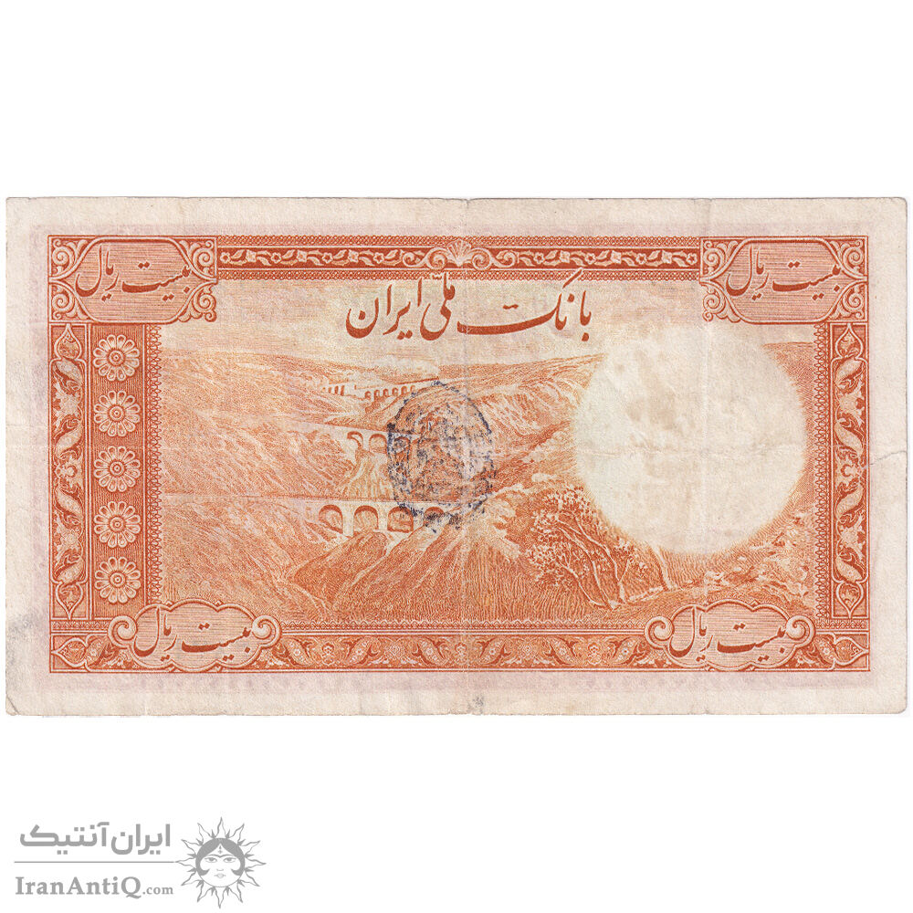 اسکناس 20 ریال پشت فارسی (مهر نامشخص) - تک - F15 - رضا شاه
