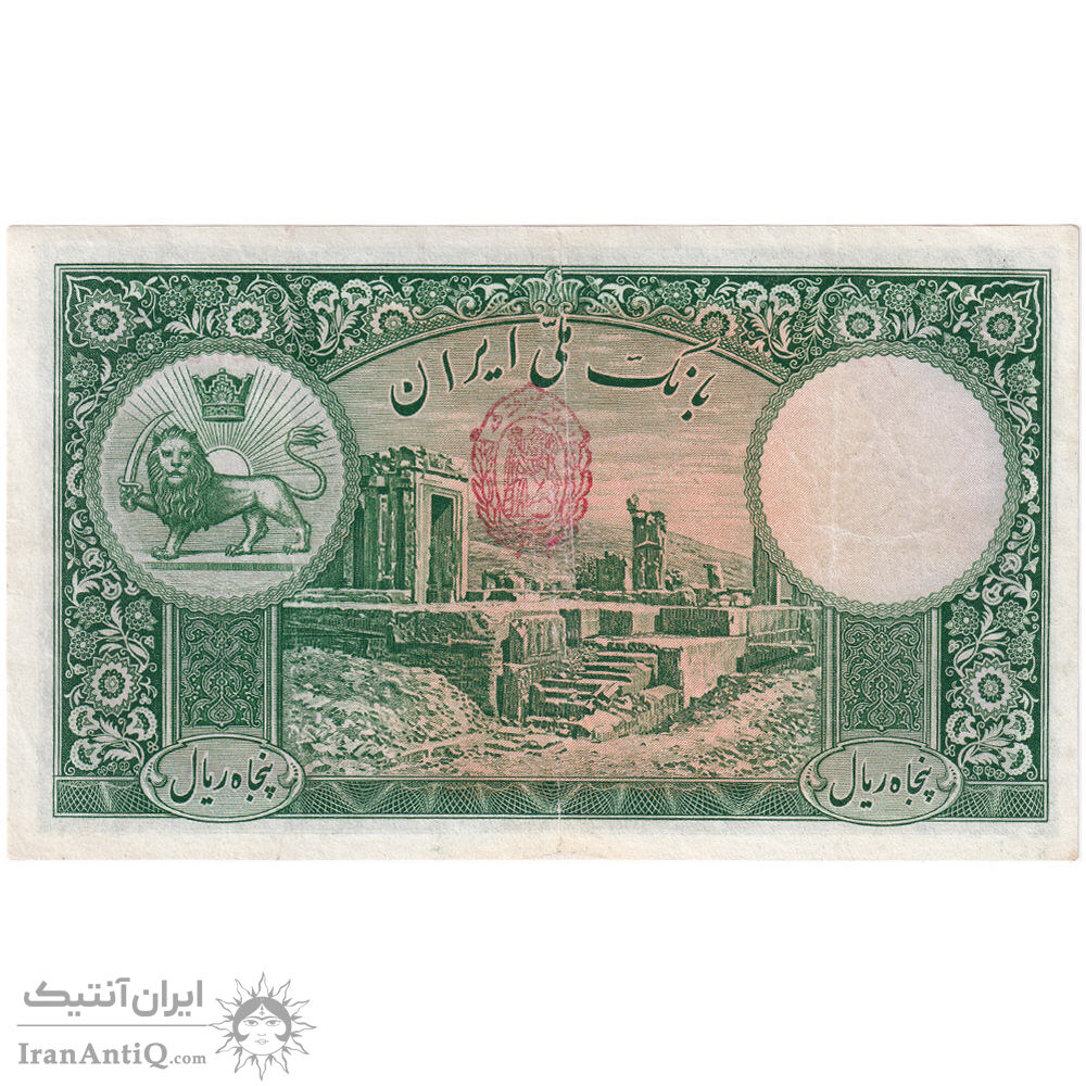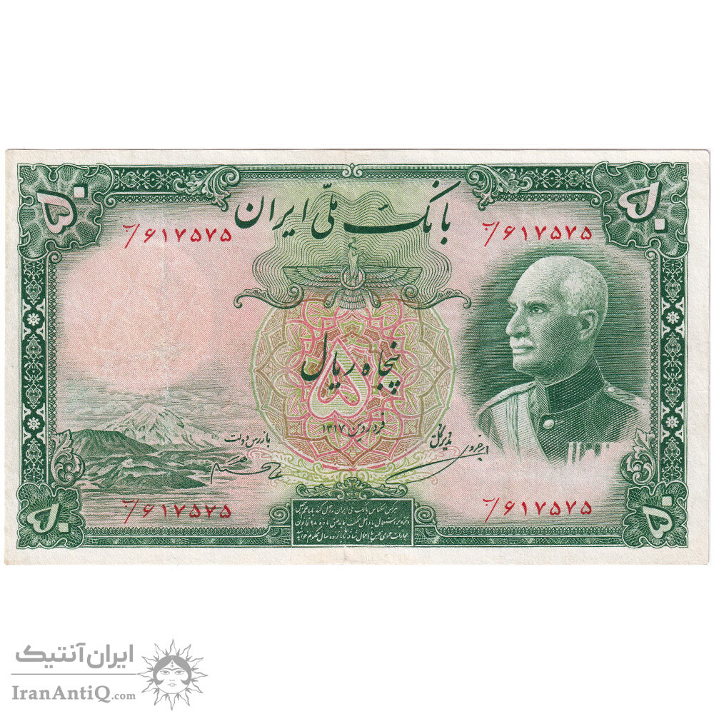 اسکناس 50 ریال پشت فارسی - شماره فارسی - مهر نامشخص - تک - VF30 - رضا شاه