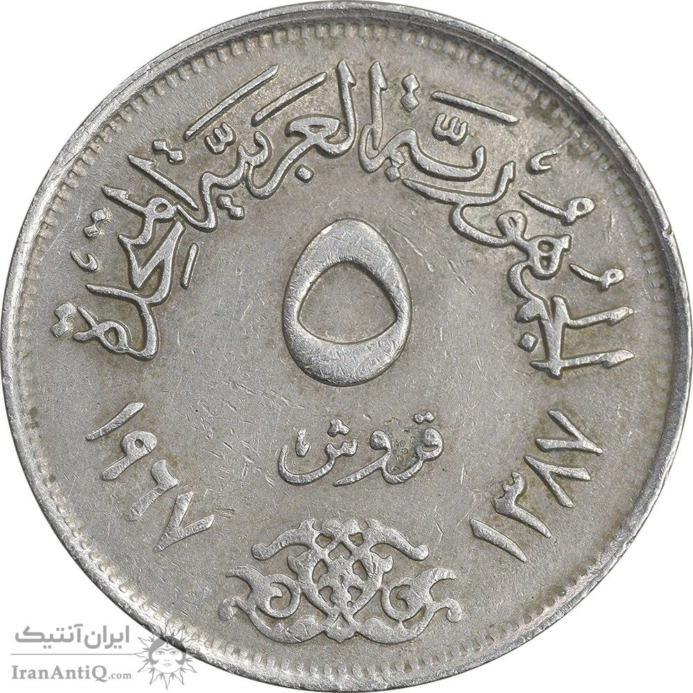 سکه 5 قروش 1387 جمهوری عربی - AU50 - مصر
