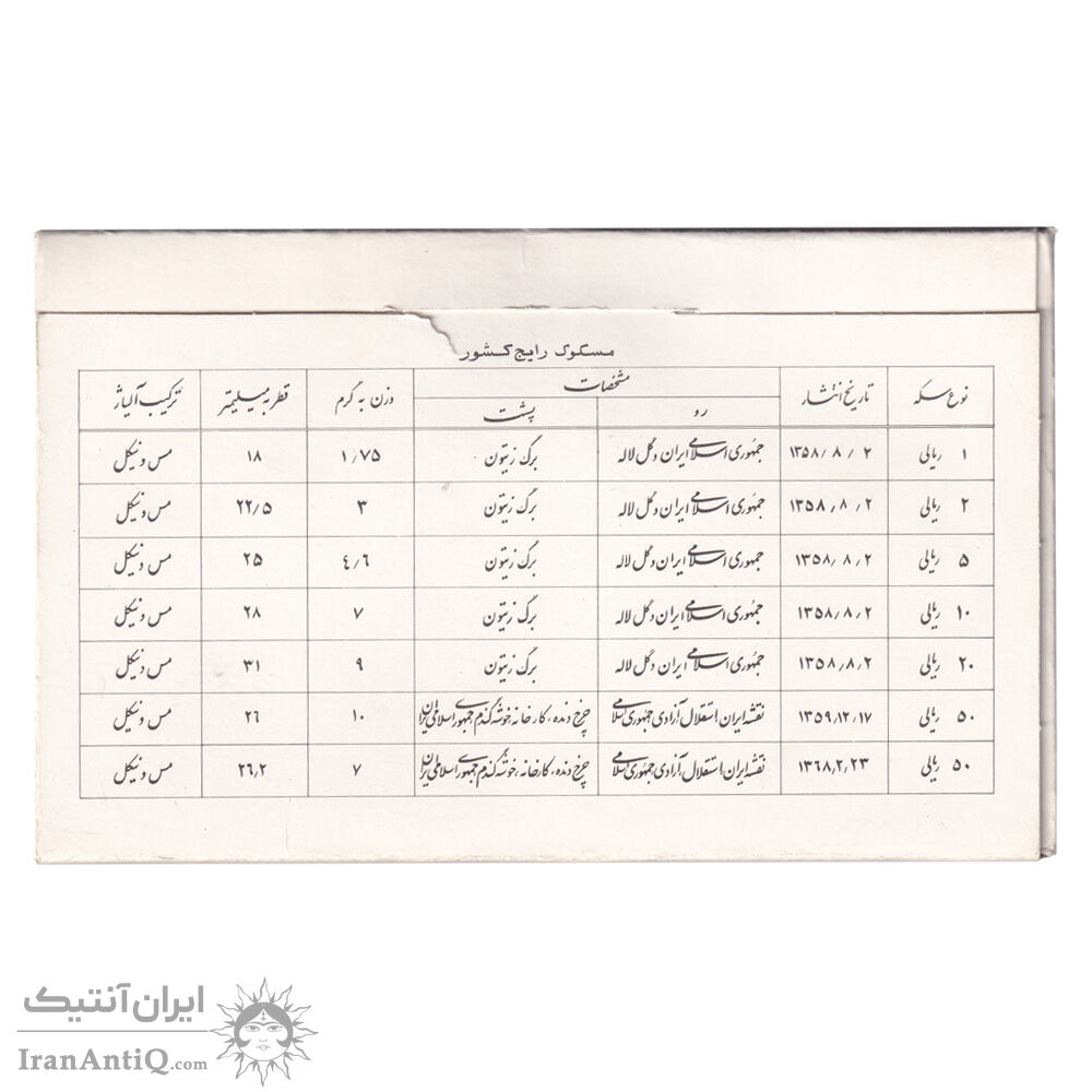 این مجموعه توسط بانک مرکزی تهیه و توزیع شده است. که شامل سکه های زیر می باشد.
