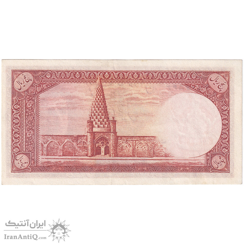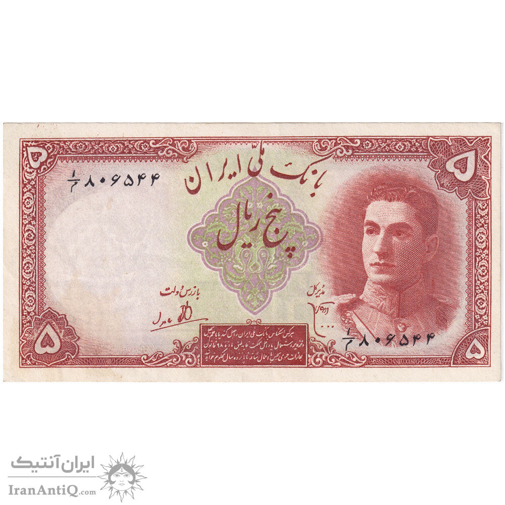 اسکناس 5 ریال - تک - AU55 - محمد رضا شاه