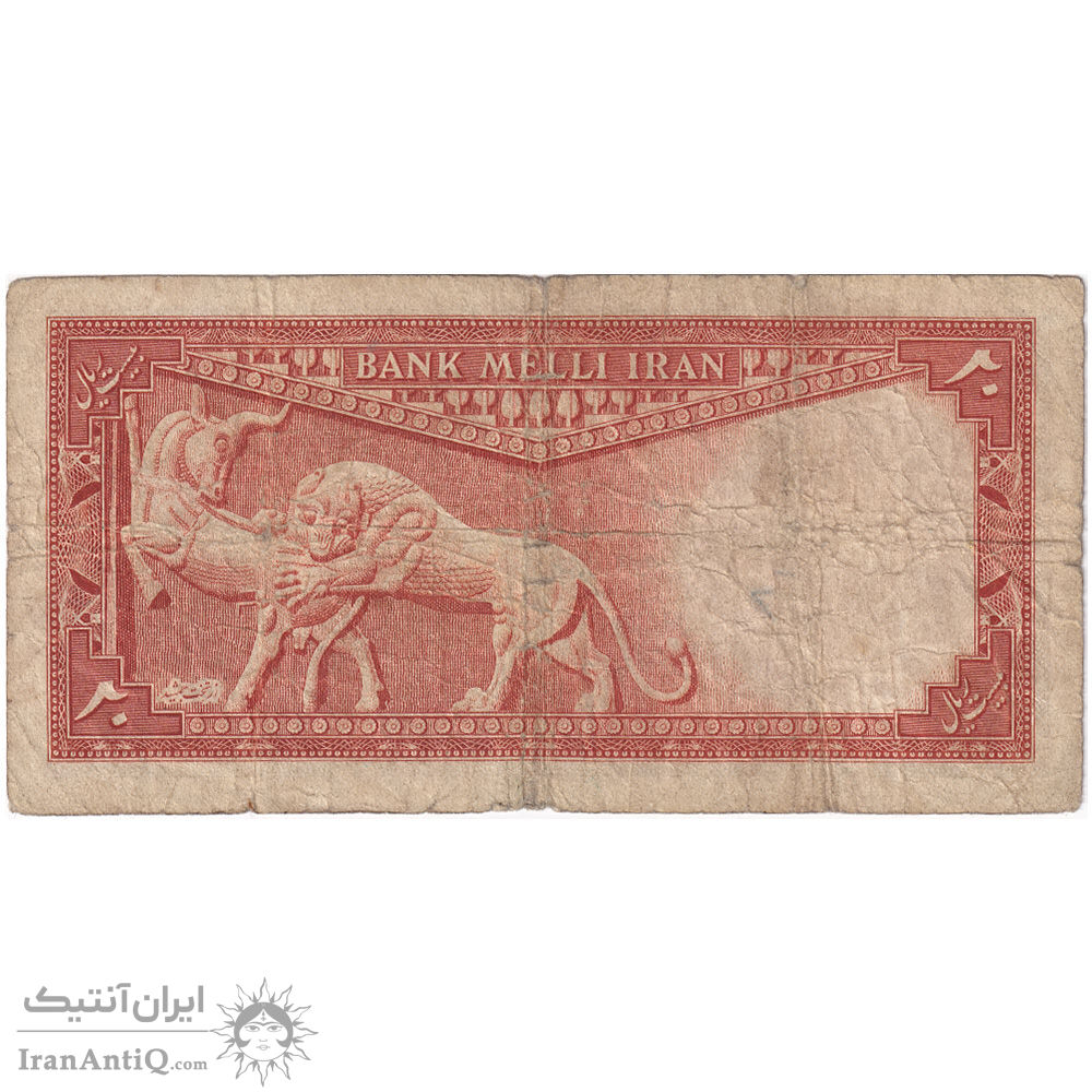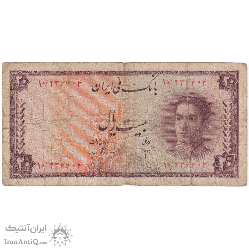 اسکناس 20 ریال سری سوم - تک - F12 - محمد رضا شاه