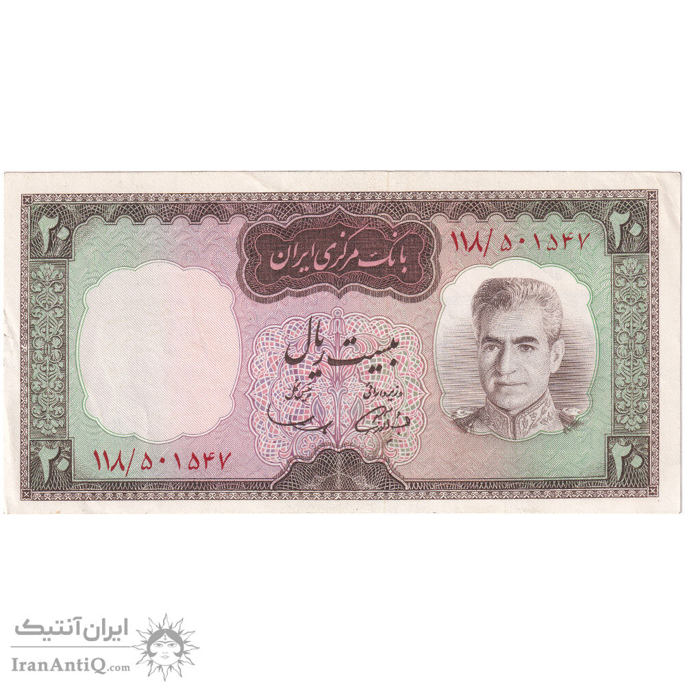 اسکناس 20 ریال (آموزگار - سمیعی) - تک - AU55 - محمد رضا شاه
