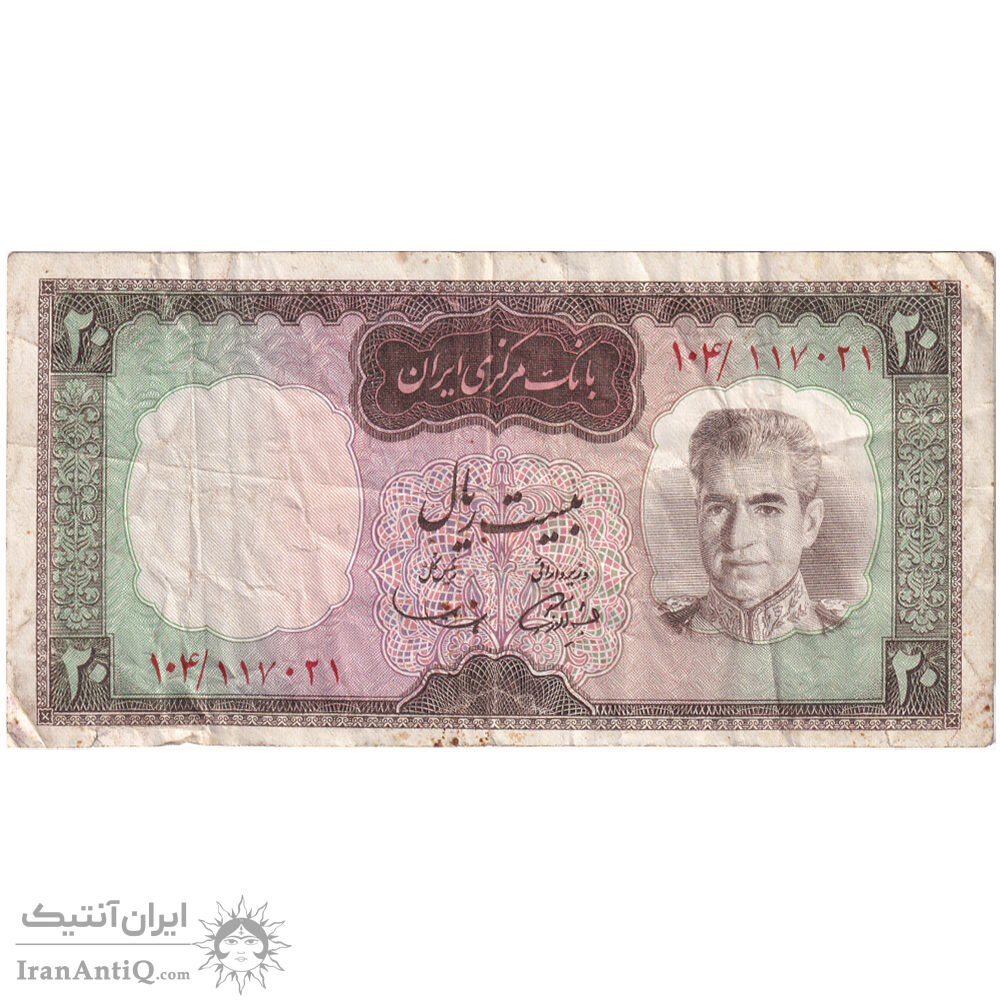 اسکناس 20 ریال (آموزگار - سمیعی) - تک - VF30 - محمد رضا شاه