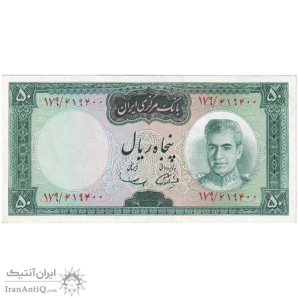 mohammad reza shah 50 rials (amuzegar - samiee) iran banknote - AU58