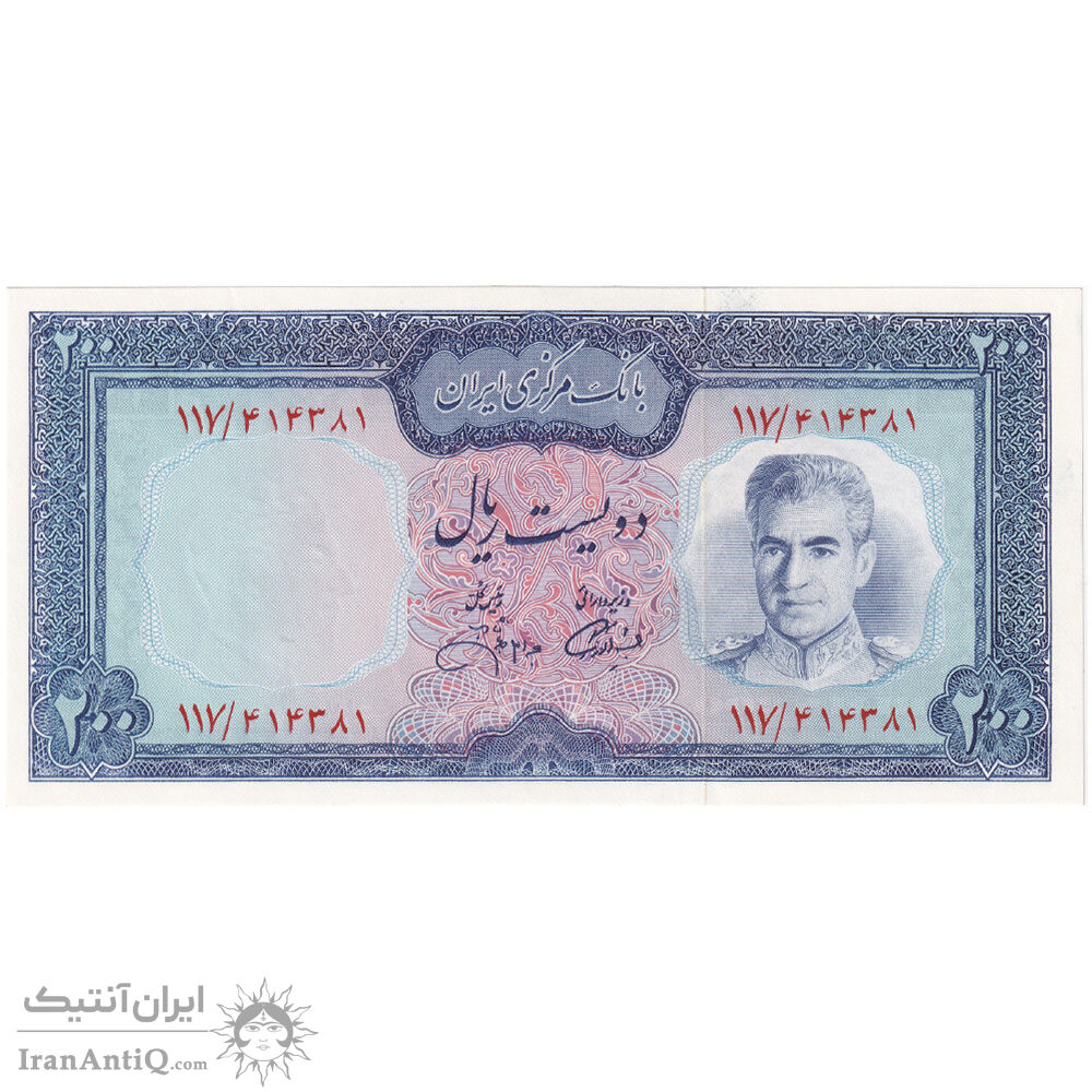 اسکناس 200 ریال (آموزگار - جهانشاهی) - تک - UNC63 - محمد رضا شاه
