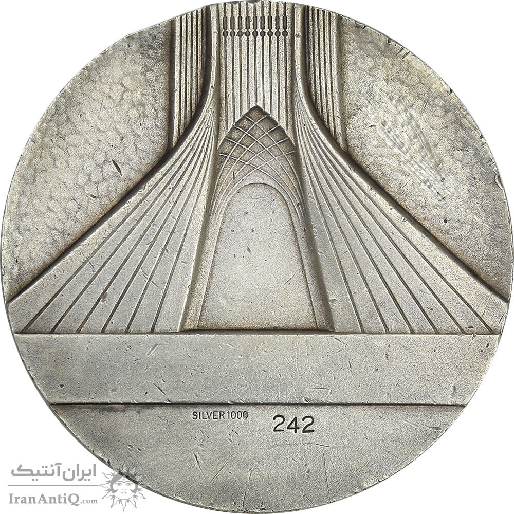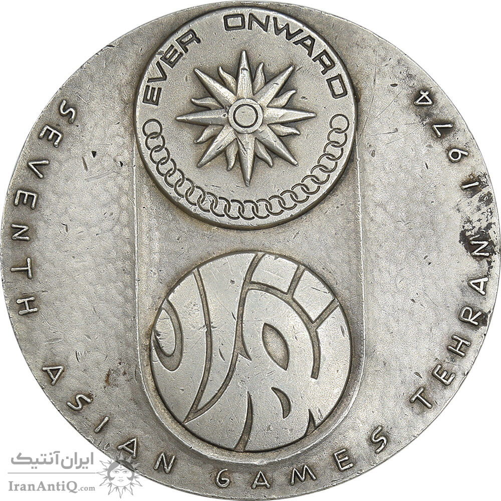 مدال یادبود نقره بازی های آسیایی تهران 1353 - ساختمان آزادی - EF - محمد رضا شاه