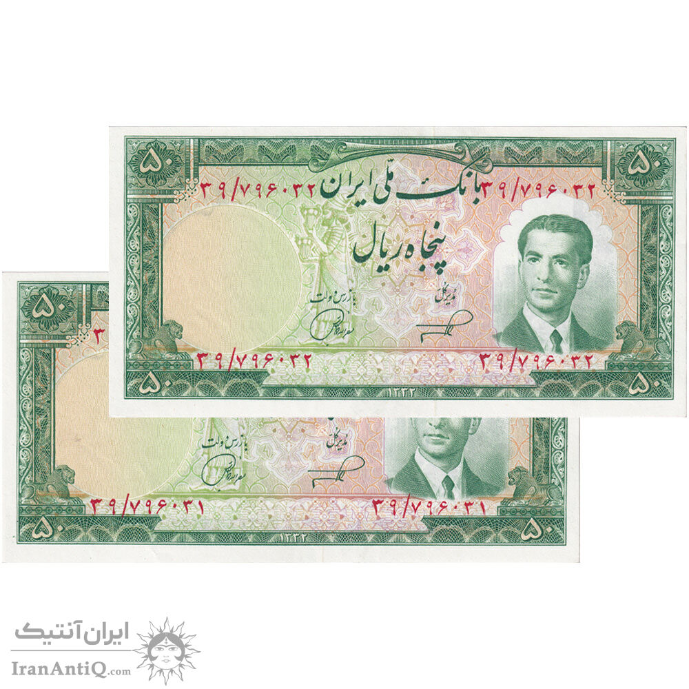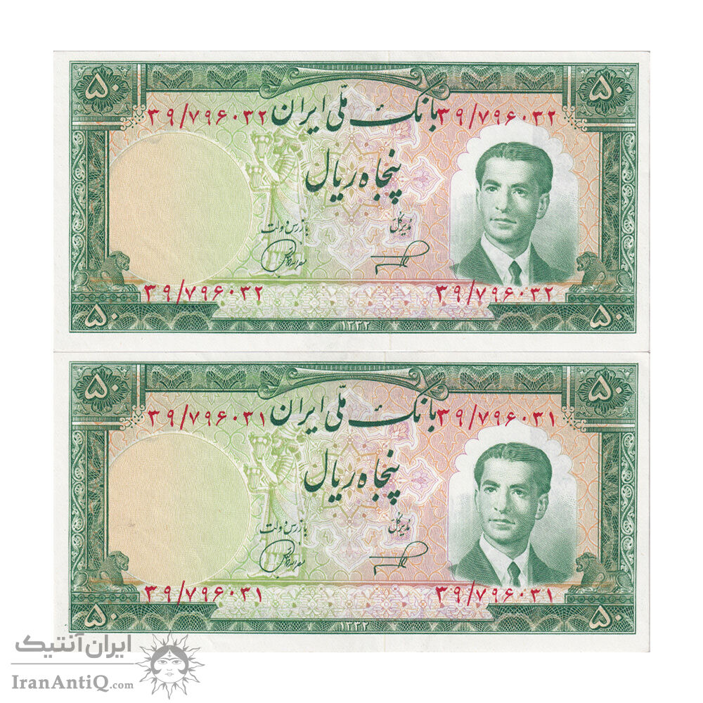 اسکناس 50 ریال 1332 - جفت - UNC62 - محمد رضا شاه