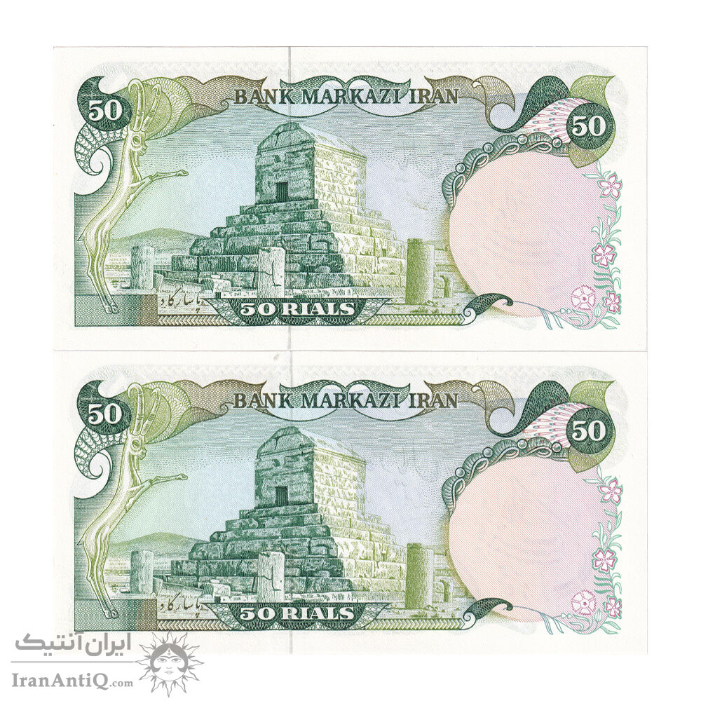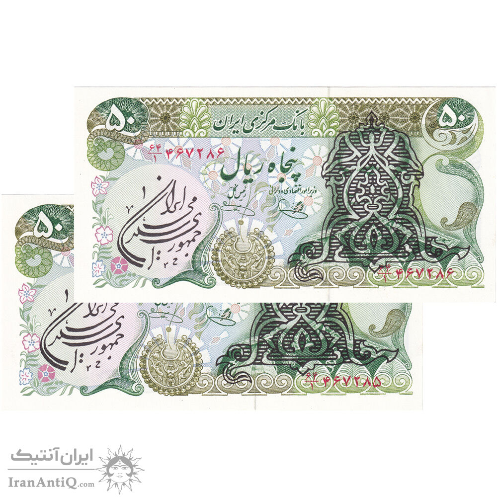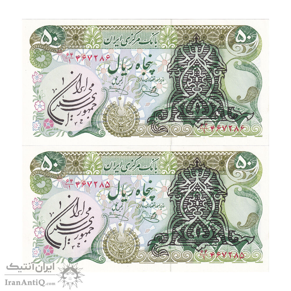 اسکناس 50 ریال سورشارژی (یگانه - خوش کیش) مهر جمهوری - جفت - UNC63 - جمهوری اسلامی