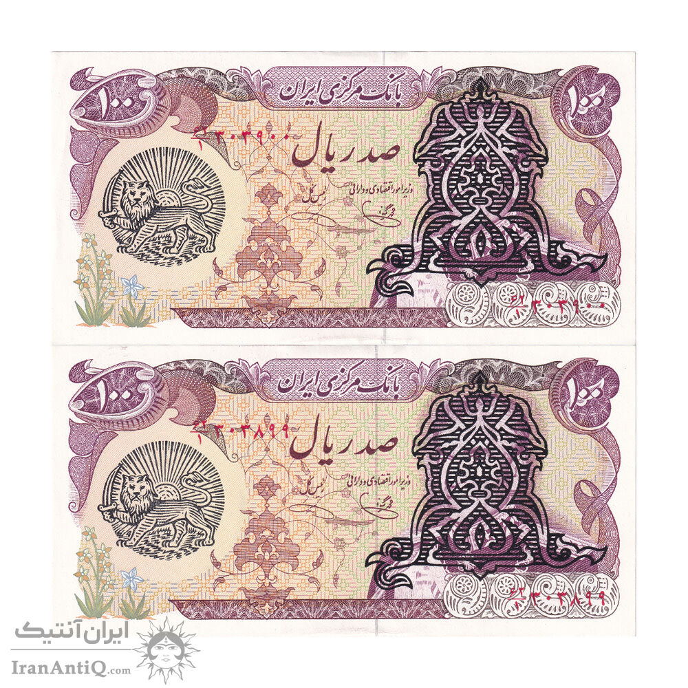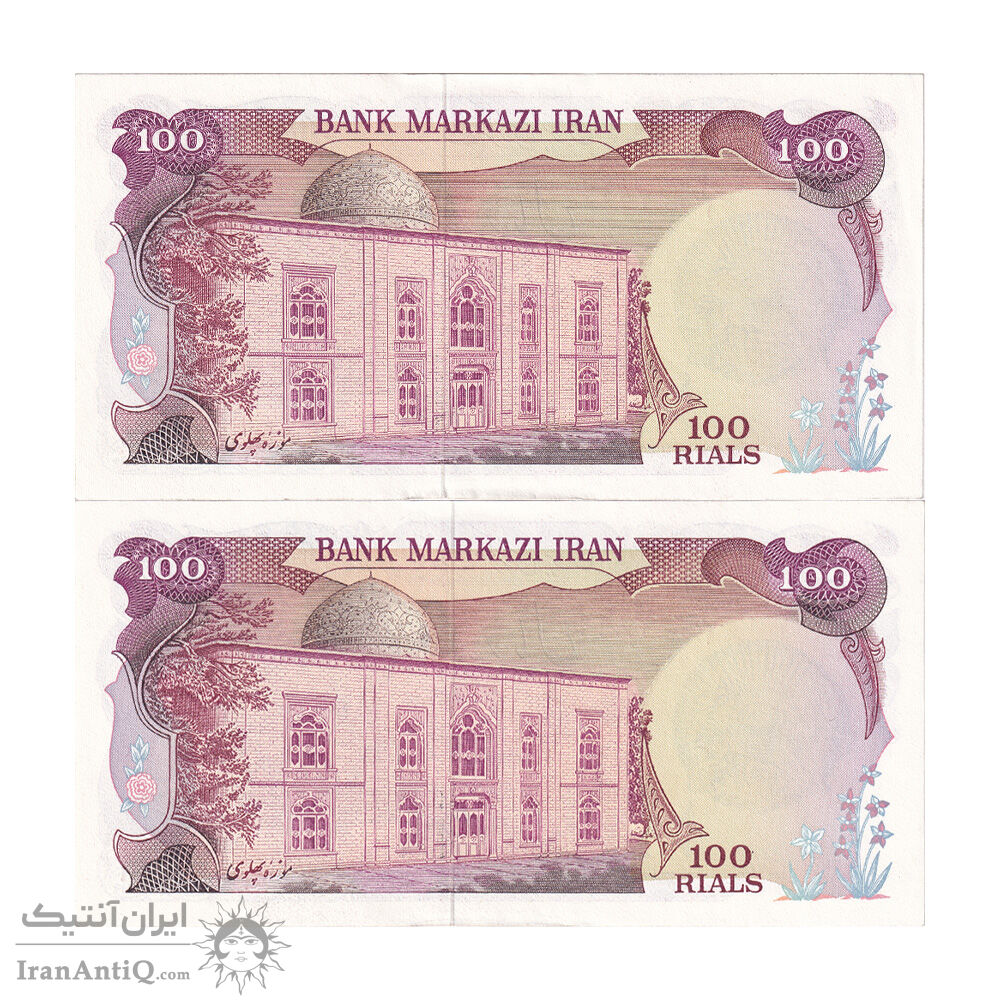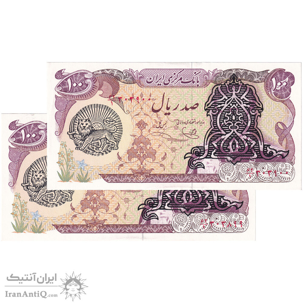 اسکناس 100 ریال سورشارژی (یگانه - خوش کیش) مهر شیر و خورشید - جفت - UNC61 - جمهوری اسلامی