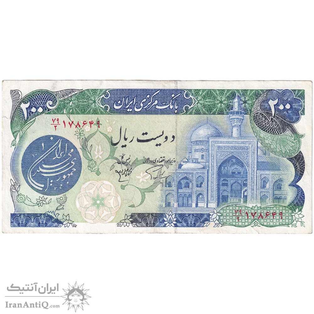 اسکناس 200 ریال (اردلان - مولوی) بدون فیلیگران - تک - EF40 - جمهوری اسلامی