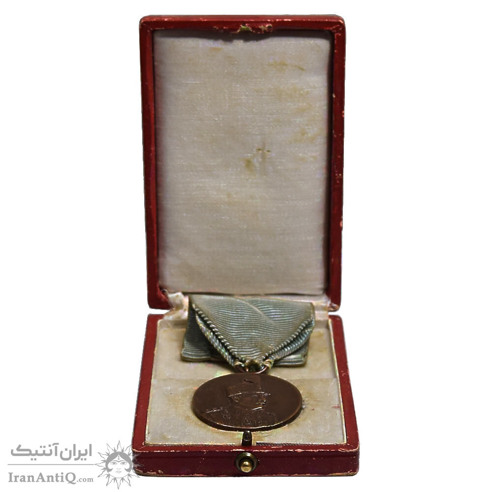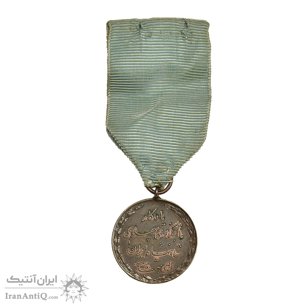 مدال یادگار تاجگذاری 1305 - با جعبه و روبان فابریک - EF - رضا شاه