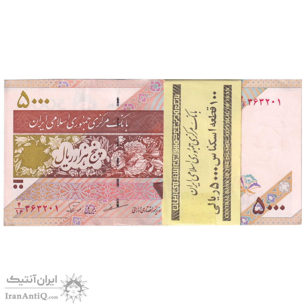 بسته اسکناس 5000 ریال امام (مظاهری - نوربخش) - UNC - جمهوری اسلامی