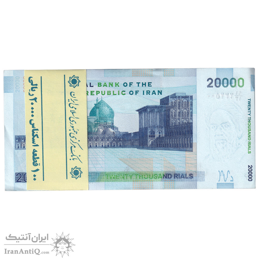 بسته اسکناس 20000 ریال (جعفری - شیبانی) فیلیگران 8 - شماره سه قلو افزایشی - UNC - جمهوری اسلامی