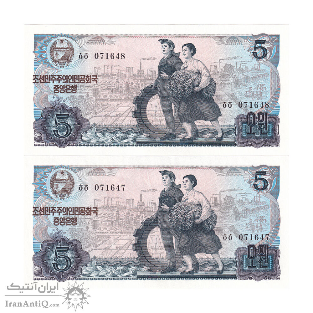 اسکناس 5 وون 1978 جمهوری دموکراتیک خلق - تک - UNC62 - کره شمالی