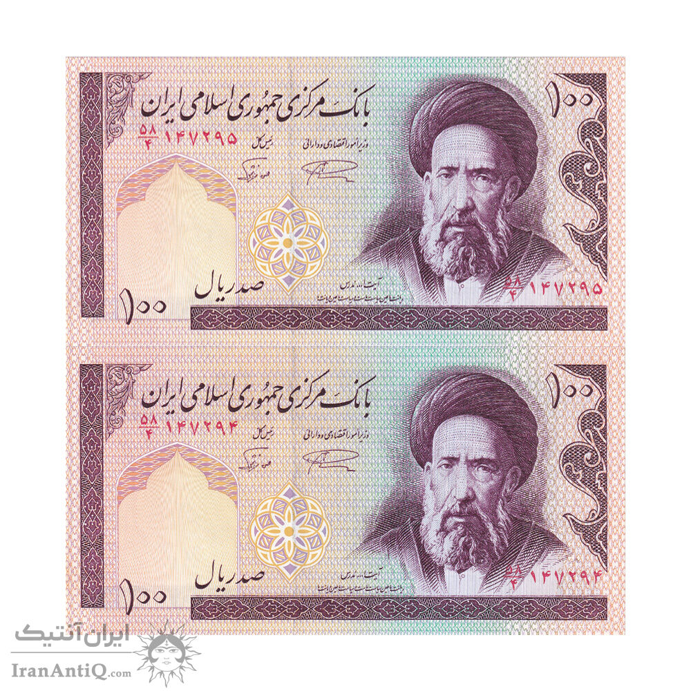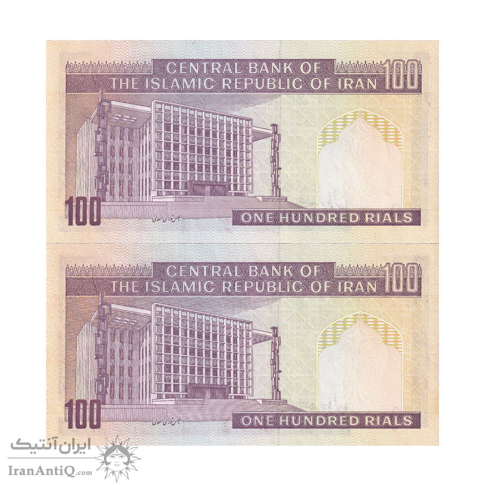 اسکناس 100 ریال (نمازی - نوربخش) شماره کوچک - فیلیگران امام - جفت - UNC63 - جمهوری اسلامی