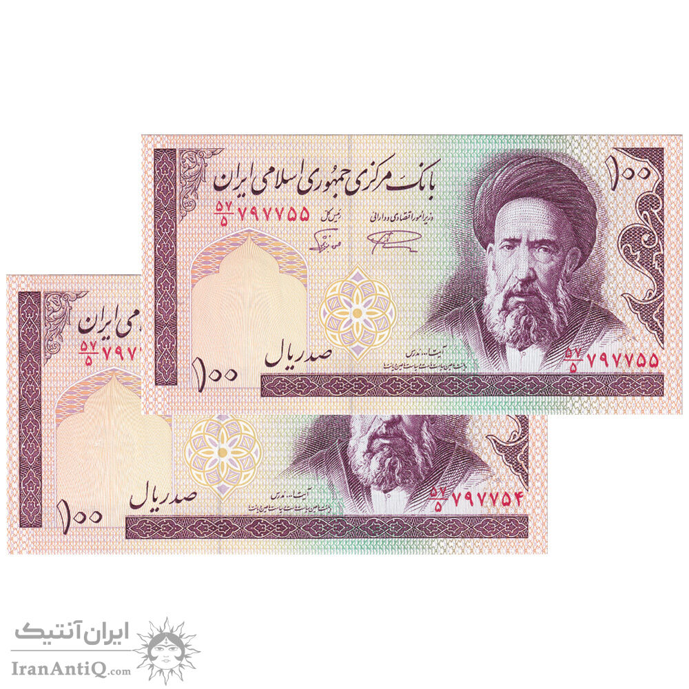 اسکناس 100 ریال (نمازی - نوربخش) شماره بزرگ - فیلیگران امام - جفت - UNC63 - جمهوری اسلامی