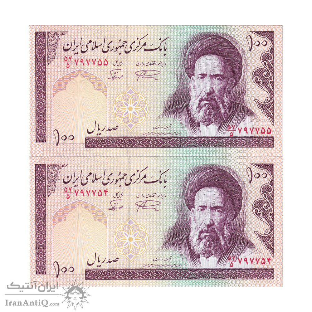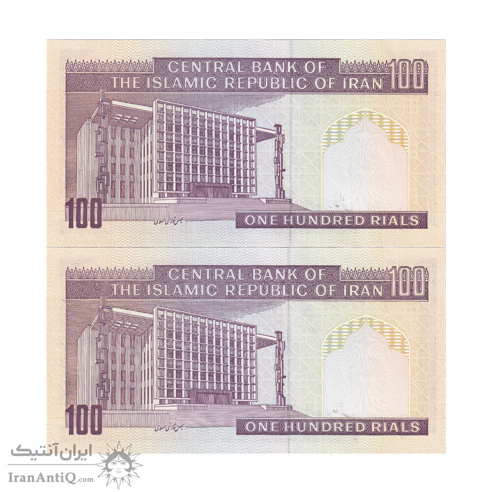 اسکناس 100 ریال (حسینی - شیبانی) فیلیگران الله - جفت - UNC63 - جمهوری اسلامی