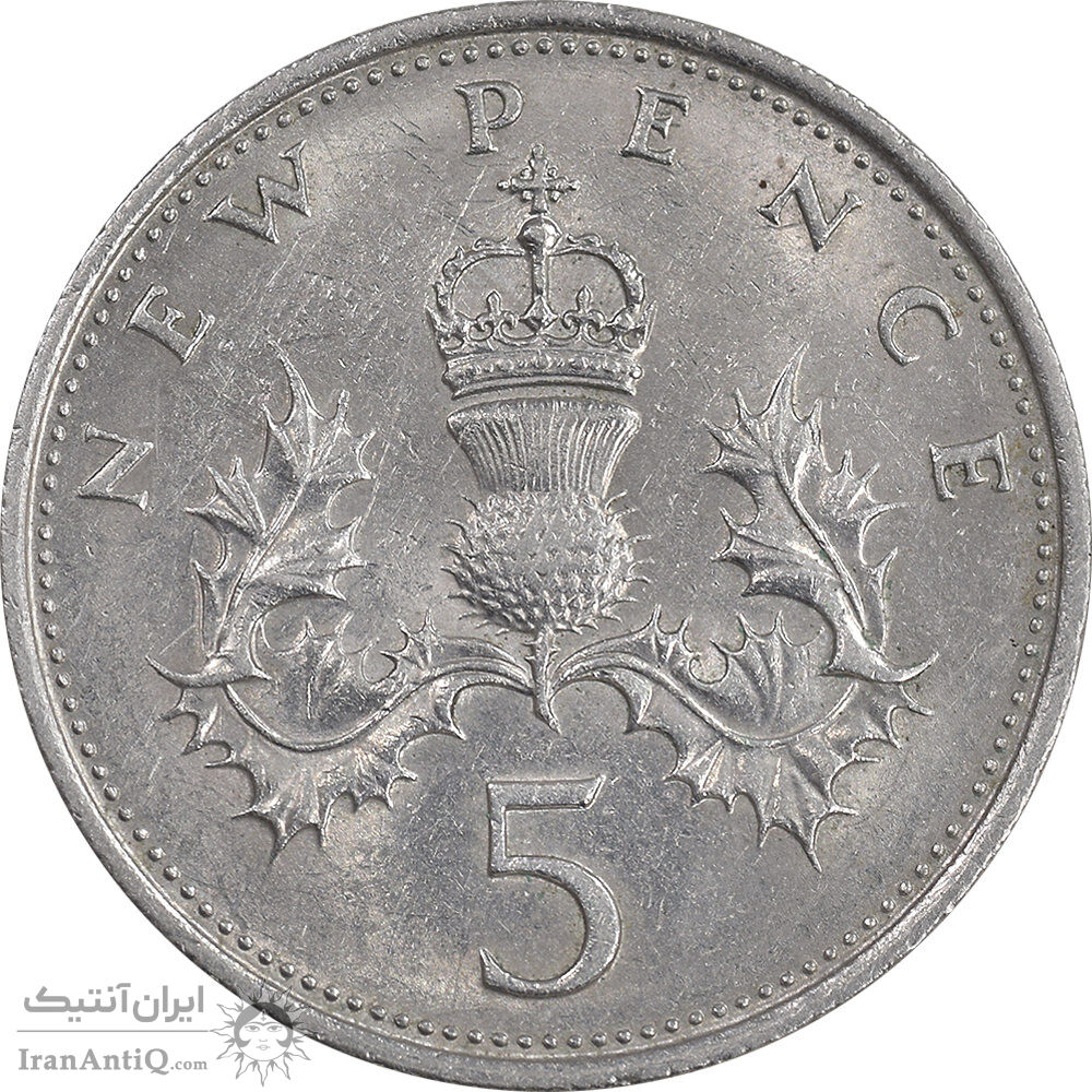 سکه 5 نیو پنس 1970 الیزابت دوم - AU58 - انگلستان