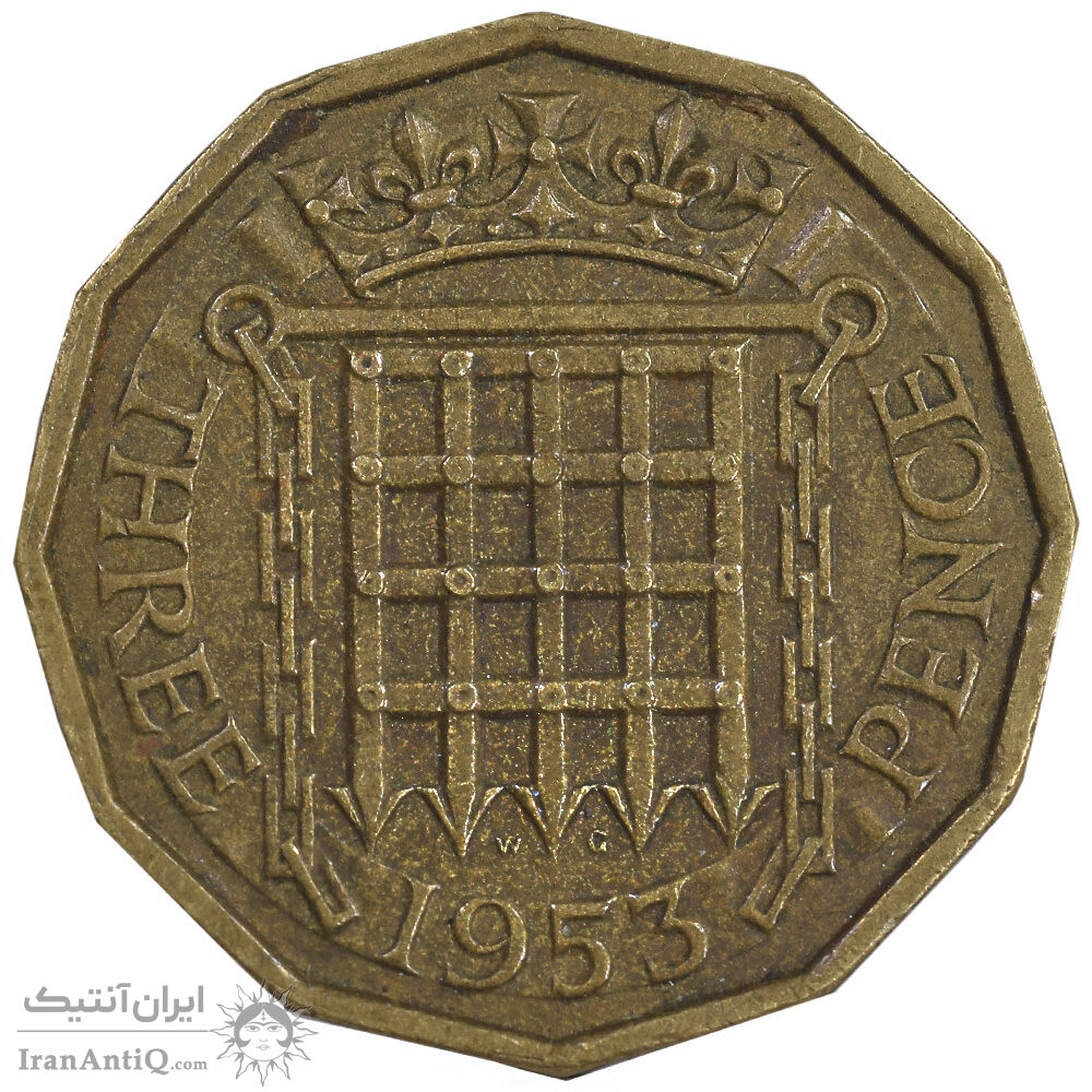 سکه 3 پنس 1953 الیزابت دوم - با نوشته (BRITT:OMN) - EF45 - انگلستان