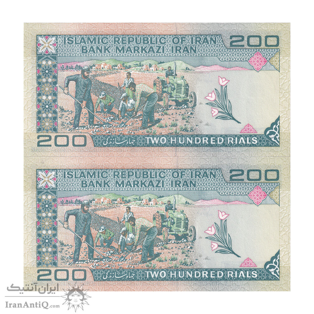 اسکناس 200 ریال (نمازی - نوربخش) فیلیگران امام - شماره کوچک - جایگزین - UNC64 - جمهوری اسلامی