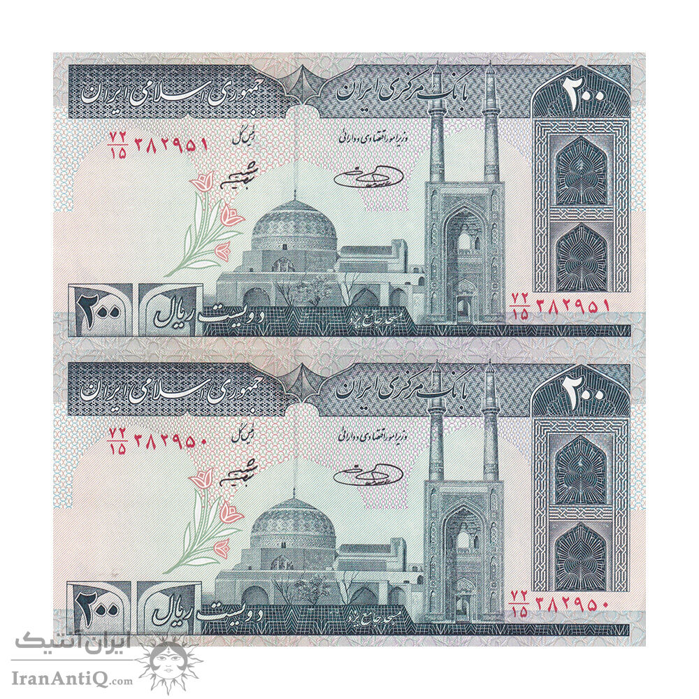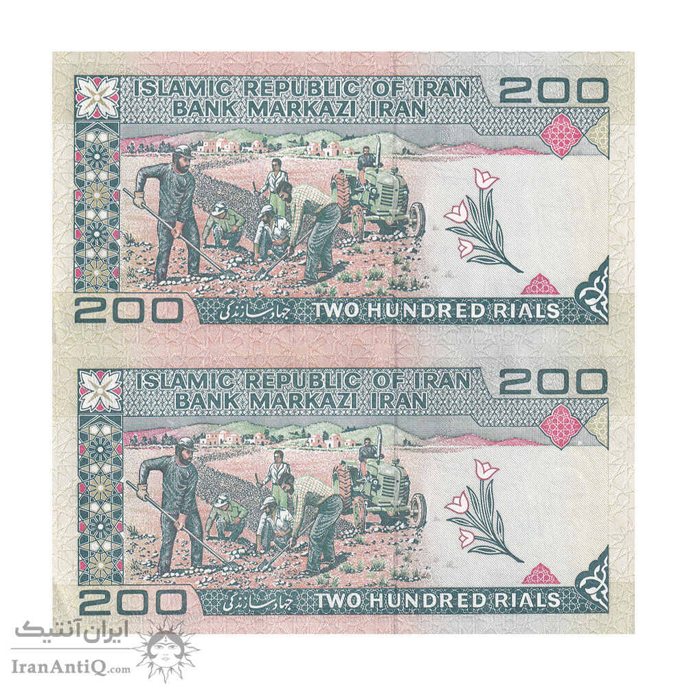 اسکناس 200 ریال (شیبانی - حسینی) - نخ نستعیلق - جفت - UNC61 - جمهوری اسلامی