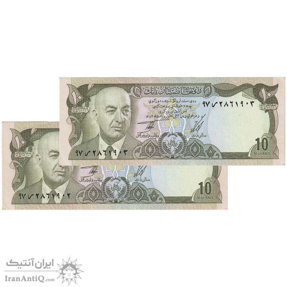 اسکناس 10 افغانی 1354 جمهوری - جفت - UNC63 - افغانستان