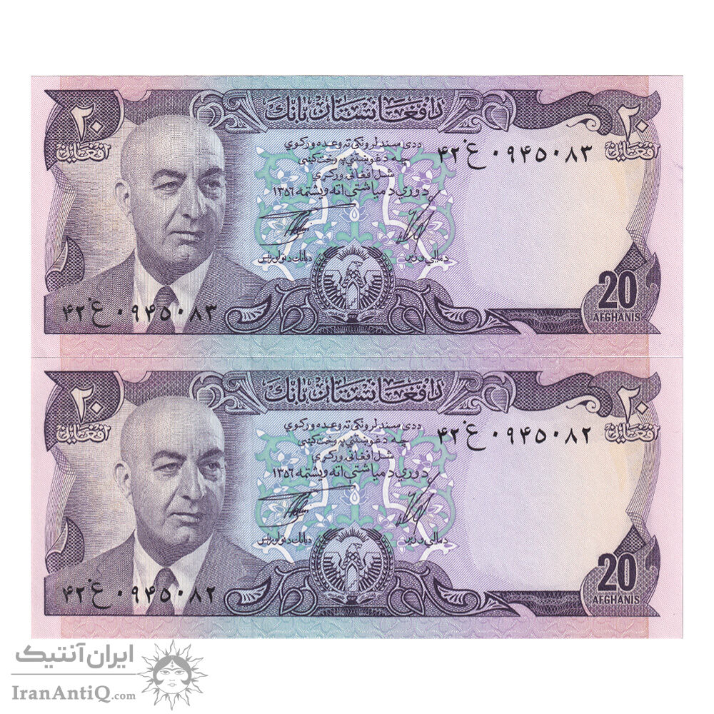 اسکناس 20 افغانی 1356 جمهوری - جفت - UNC63 - افغانستان