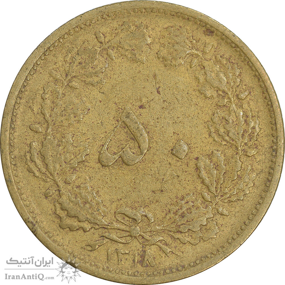 سکه 50 دینار 1318 برنز - VF35 - رضا شاه