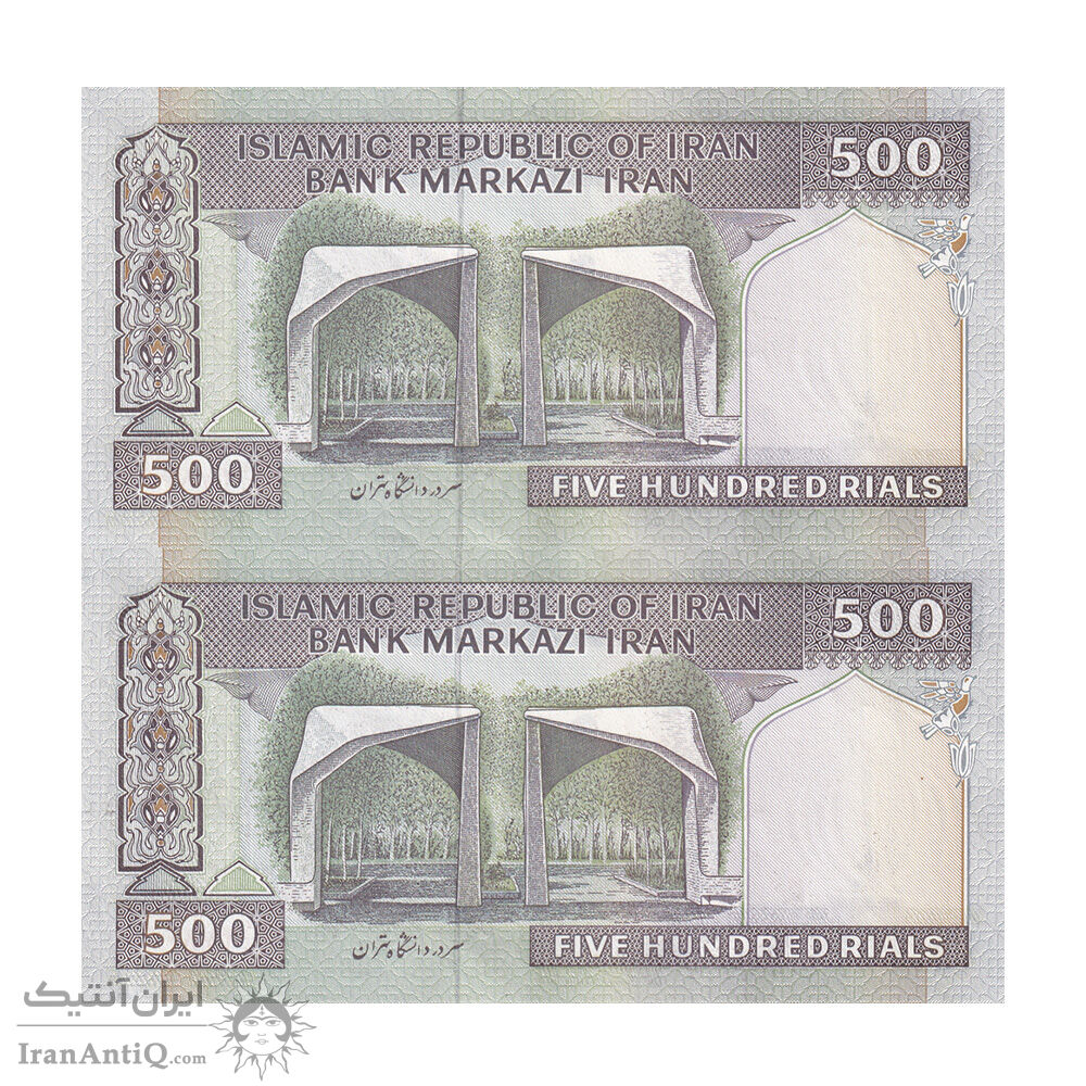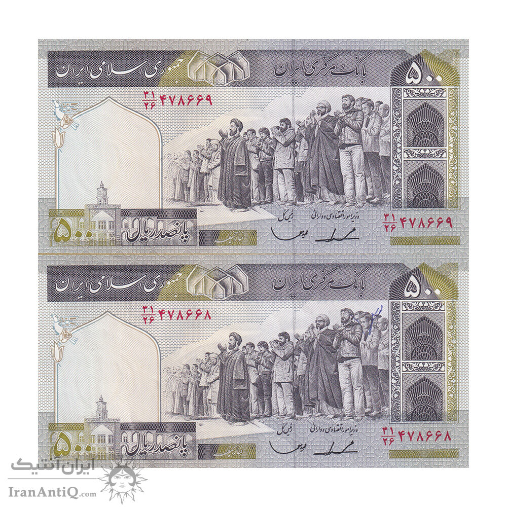 اسکناس 500 ریال (ایروانی - قاسمی) فیلیگران الله - شماره بزرگ - جفت - UNC61 - جمهوری اسلامی