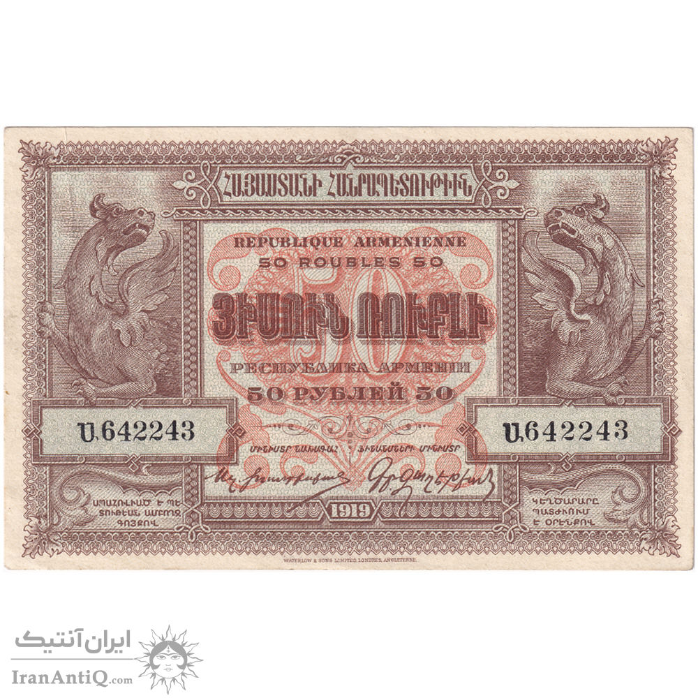 اسکناس 50 روبل 1919 جمهوری اول - تک - EF45 - ارمنستان
