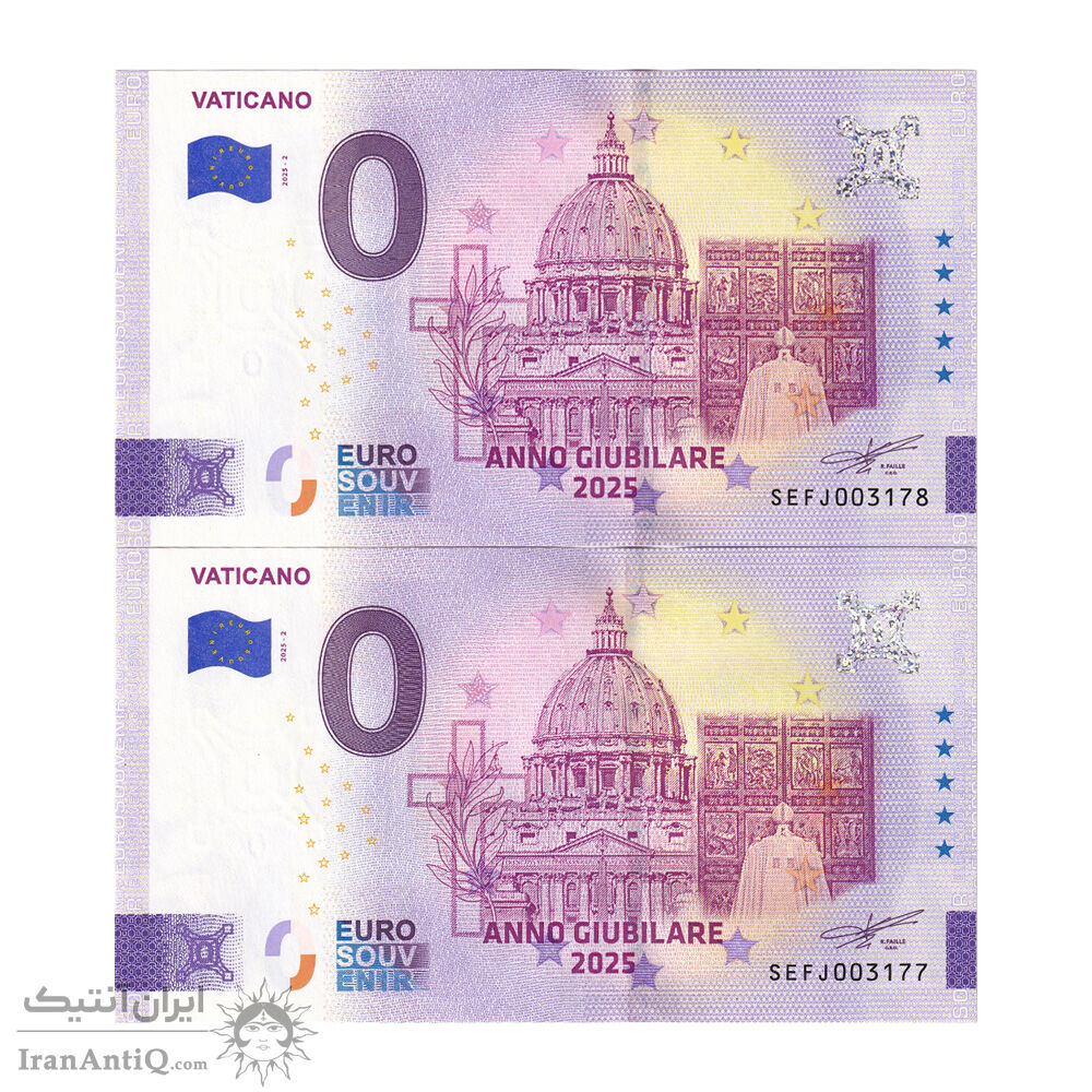 اسکناس 0 یورو 2025 - جشن واتیکان - جفت - UNC64 - ایتالیا
