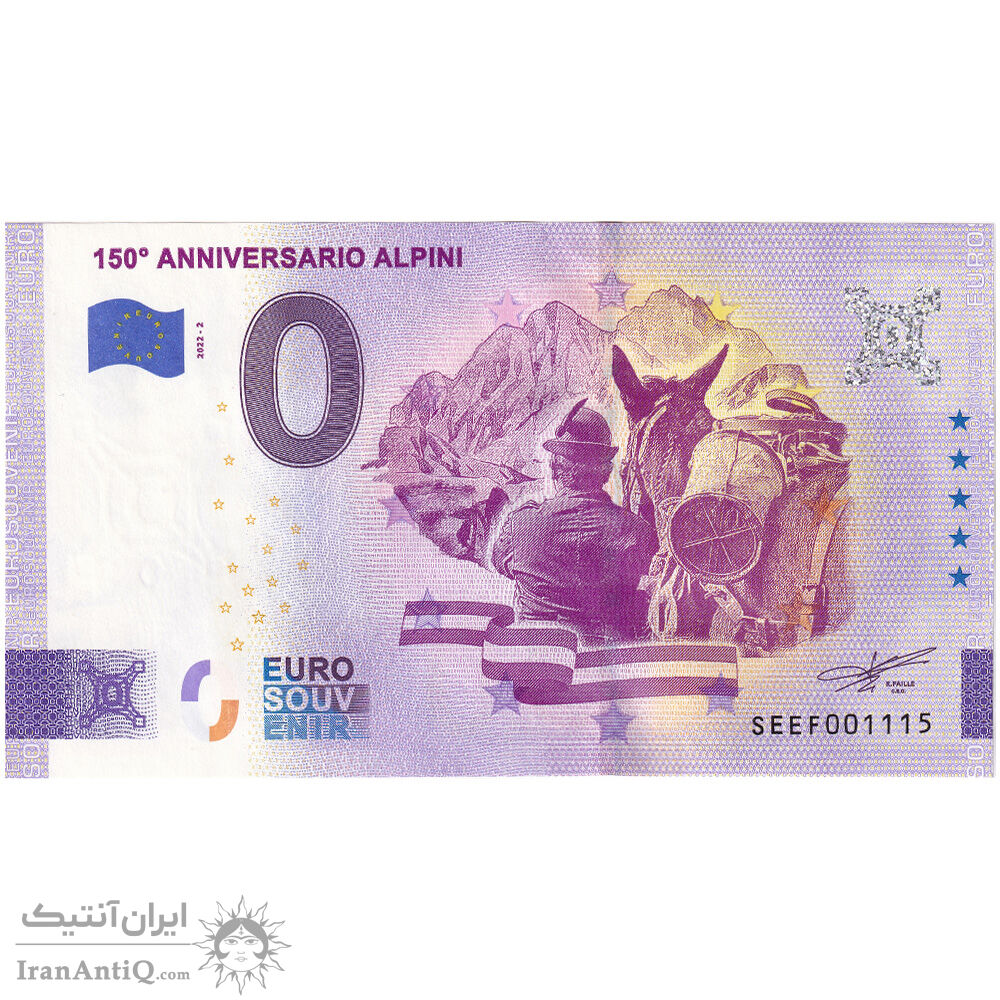 اسکناس 0 یورو 2022 - صد و پنجاهمین سالگرد تاسیس یگان آلپینی - تک - UNC64 - ایتالیا