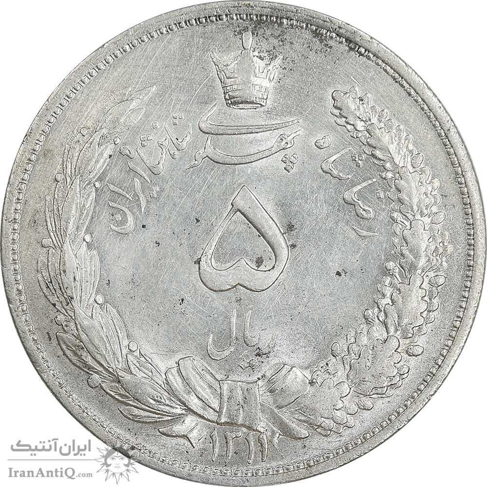 سکه 5 ریال 1311 - AU58 - رضا شاه
