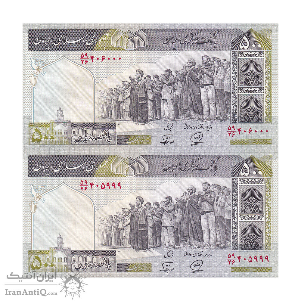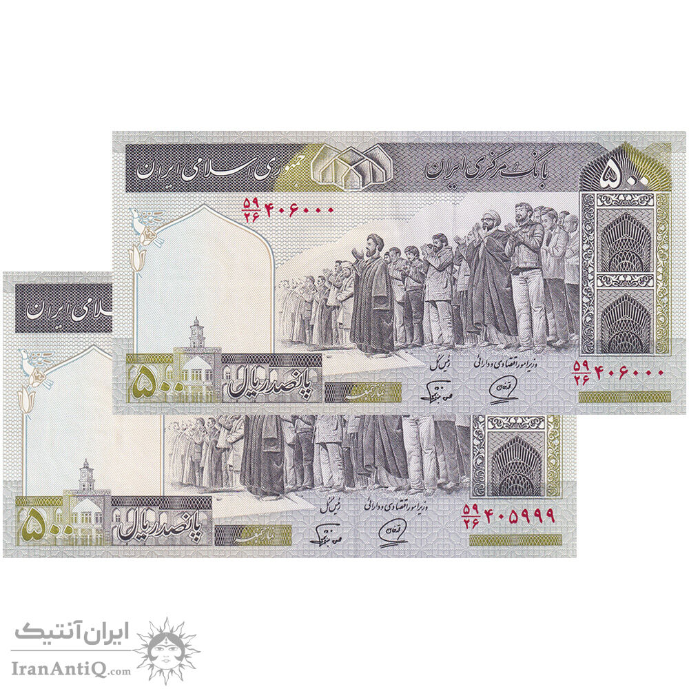 اسکناس 500 ریال (محمدخان - نوربخش) فیلیگران فهمیده - جفت - UNC62 - جمهوری اسلامی