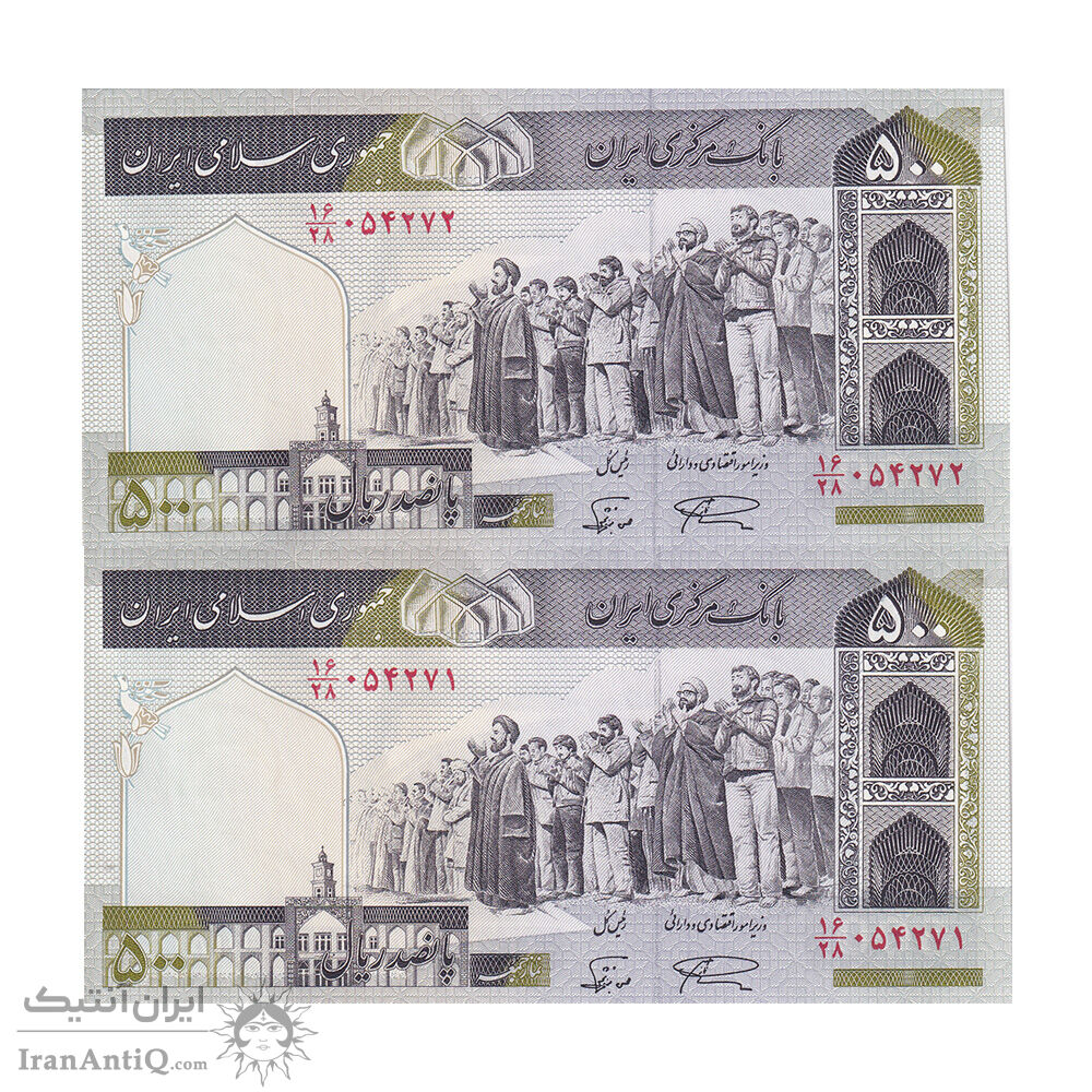 اسکناس 500 ریال (نمازی - نوربخش) فیلیگران امام - تیپ یک - نخ کامپیوتری - جفت - UNC64 - جمهوری اسلامی